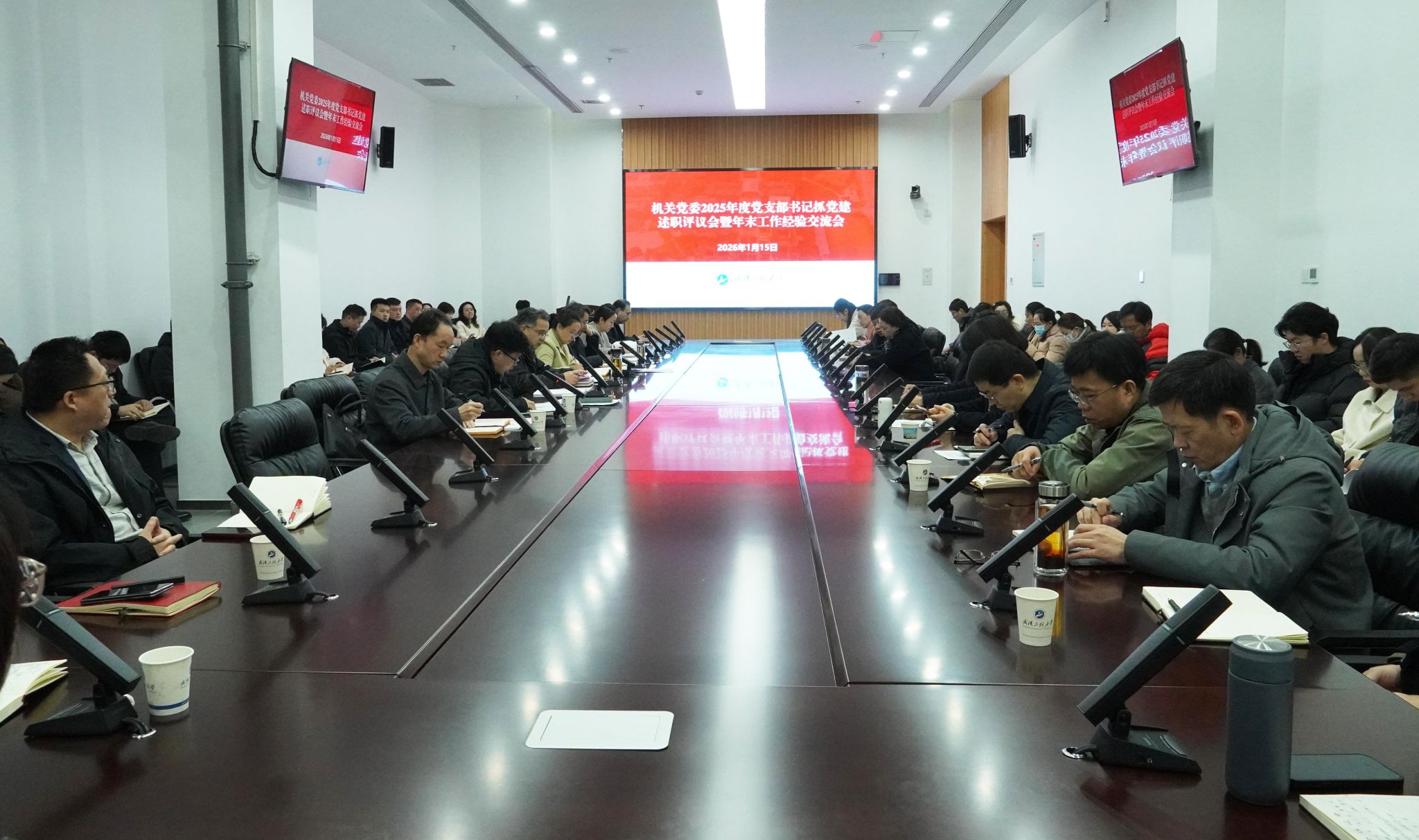 本网讯(通讯员 沈霁月)1月15日上午,机关党委在教育教学综合楼215会议室召开2025年度党支部书记抓党建述职评议会暨年末工作经验交流会,校党委副书记(正厅长级)潘慧明出席会议,机关党委委员、各党支部书记参加会议,会议由机关党委书记郭昕主持。